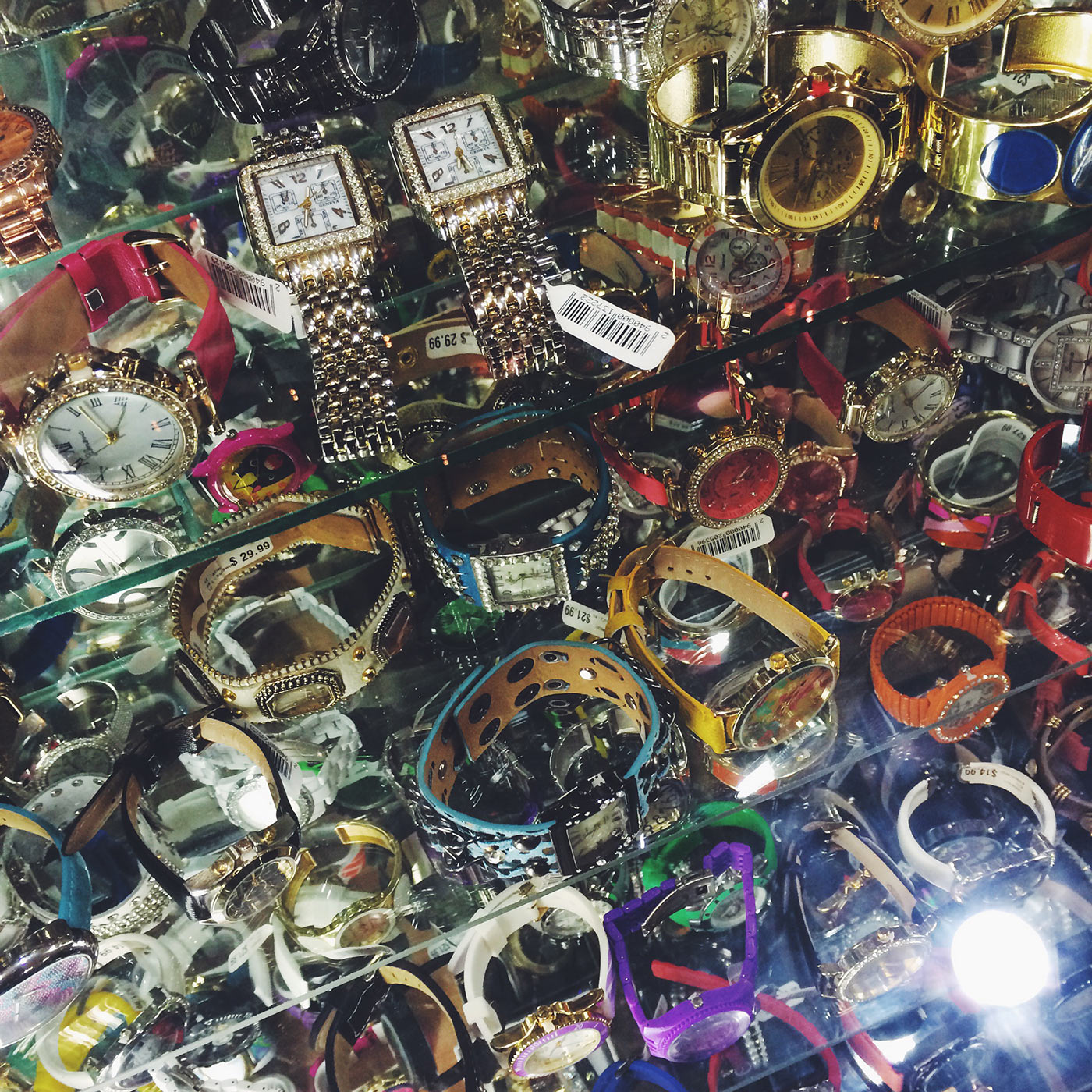 Я уже как-то писал про то, что в Панаме принято играть в «секретных друзей». Это когда надо дарить пустяковые штучки (ценой не больше $1) случайно выбранному коллеге по офису. Но переодически подарок бывает большой. У моей женщины на работе этот подарок не может быть больше $20. И чтоб не всучить совсем что-то бесполезное, обычно пишут свои пожелания на общей для всех доске. Её секретная подруга заказала часы. Какие часы можно купить за двадцатку?