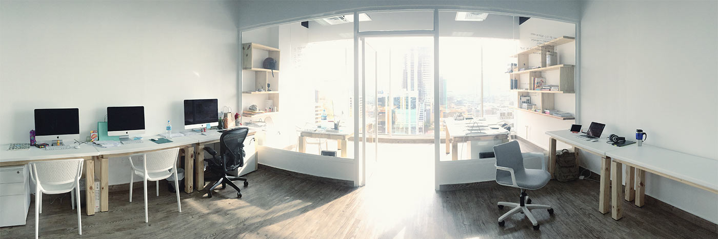 Мой стульчик справа. Добрый дядя архитектор в порыве хипстерства и индустриального дизайна вывел трубу кондиционера в стену. Лихой ветерок непрерывно дует в глаза. Я аж прифигел в первый день и пришел домой с температурой. На следующий день купил что-то вроде пуховика (это в тропиках то) и просидел замотанный шарфиком.
