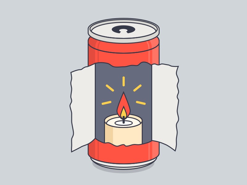 Небольшую лампу можно изготовить из металической банки Нюка-Колы. А если еще насыпать туда немного песка, то парафин от первой свечи впитается и получится подставка для следующих свечек.