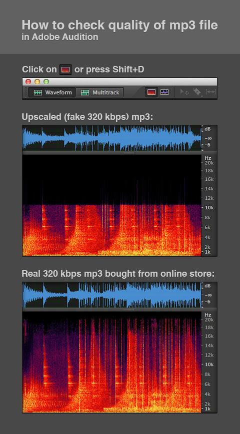 А любителям выкачивать музыку тюками и складировать в дальней комнате стоит знать о такой штуке, как upscaling. Это когда добрые пираты пересохраняют непонятно где взятые треки в хорошем качестве (320 kbps) и выдают за оригинал.